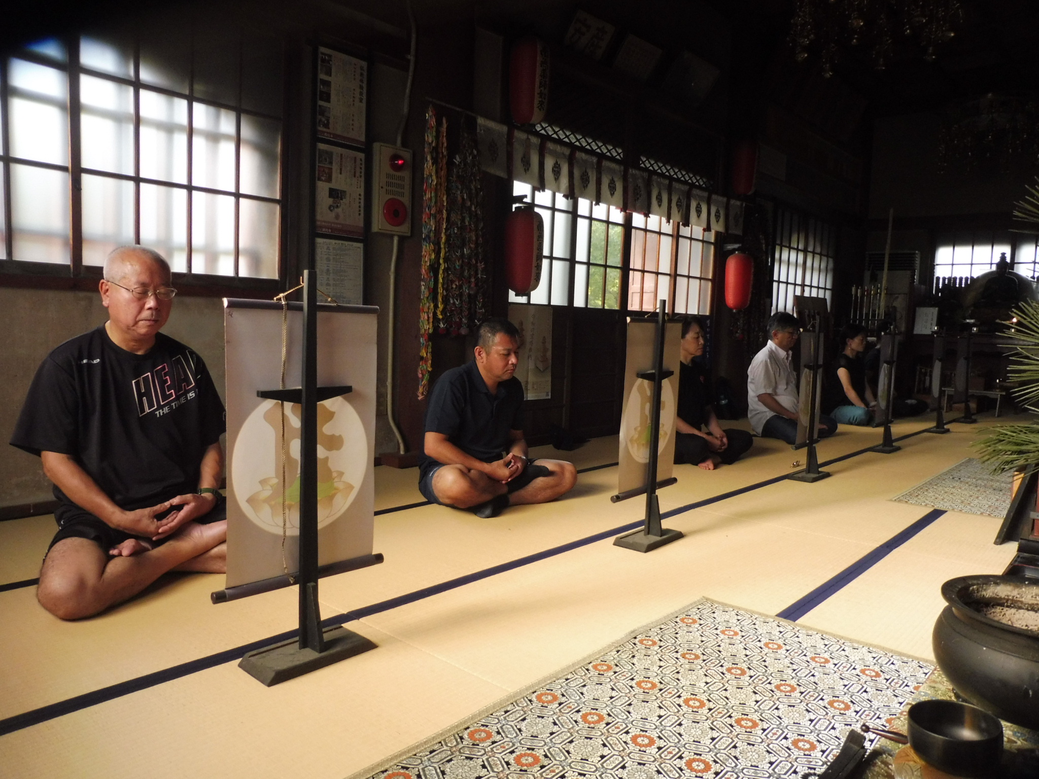 阿字観とは、真言宗に伝わる瞑想法で、真言禅とも呼ばれています。この瞑想法は心を落ち着かせ、深い内観を通して自身に内在する仏性(ぶっしょう)とコンタクトを行います。当寺では、皆様にこの素晴らしい瞑想を体験して頂けます。