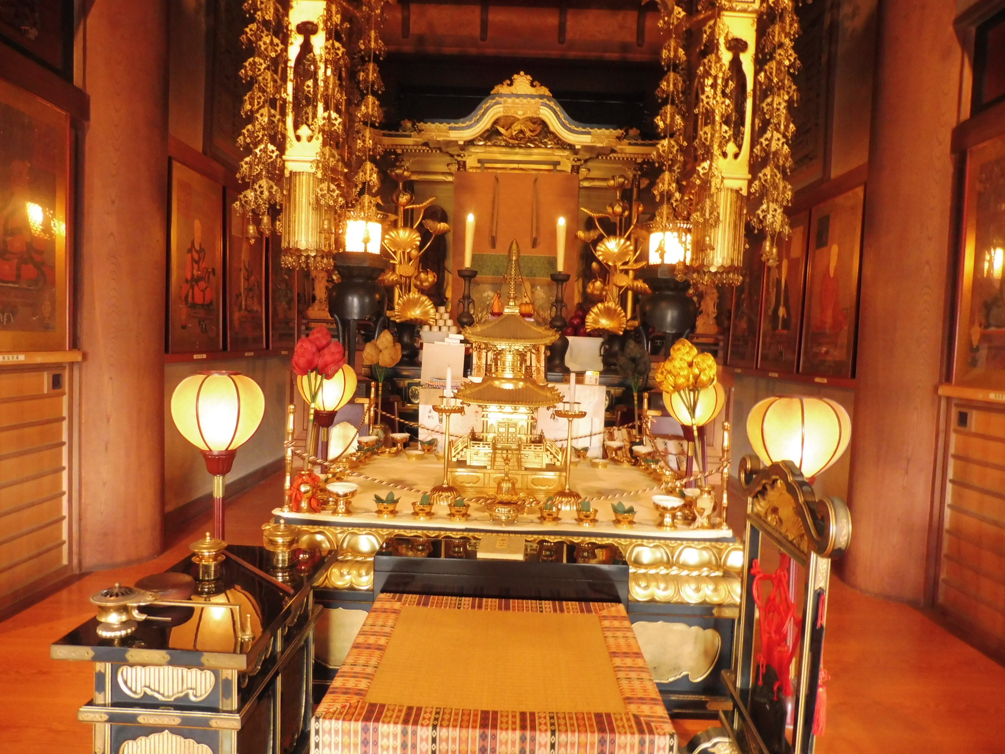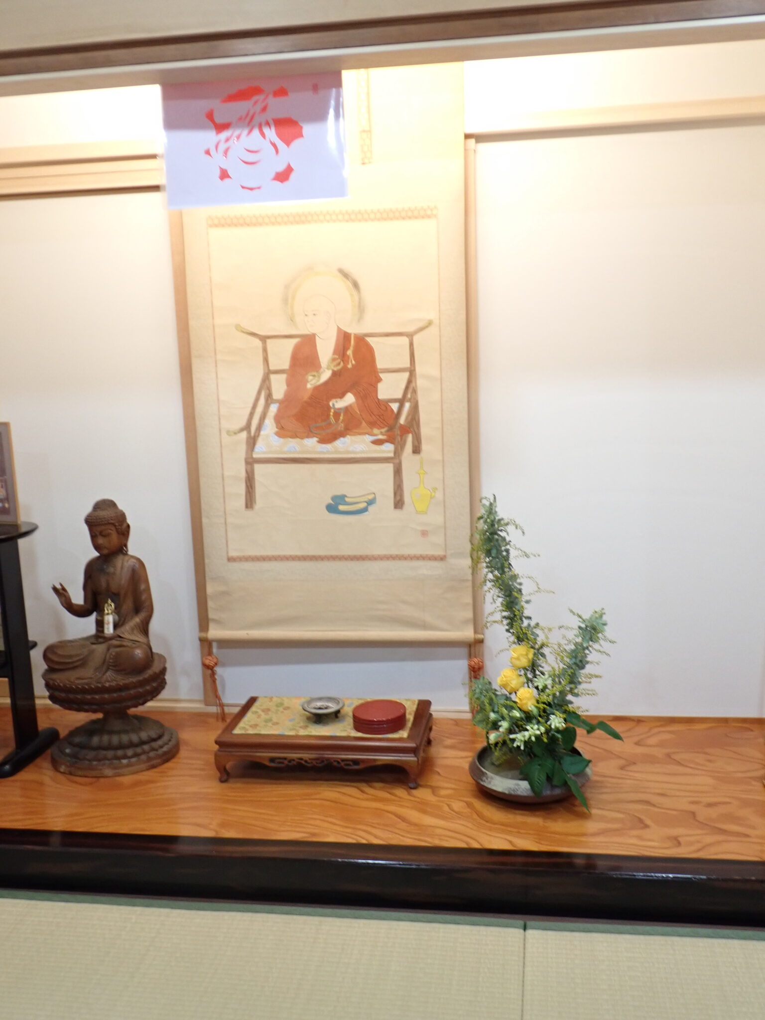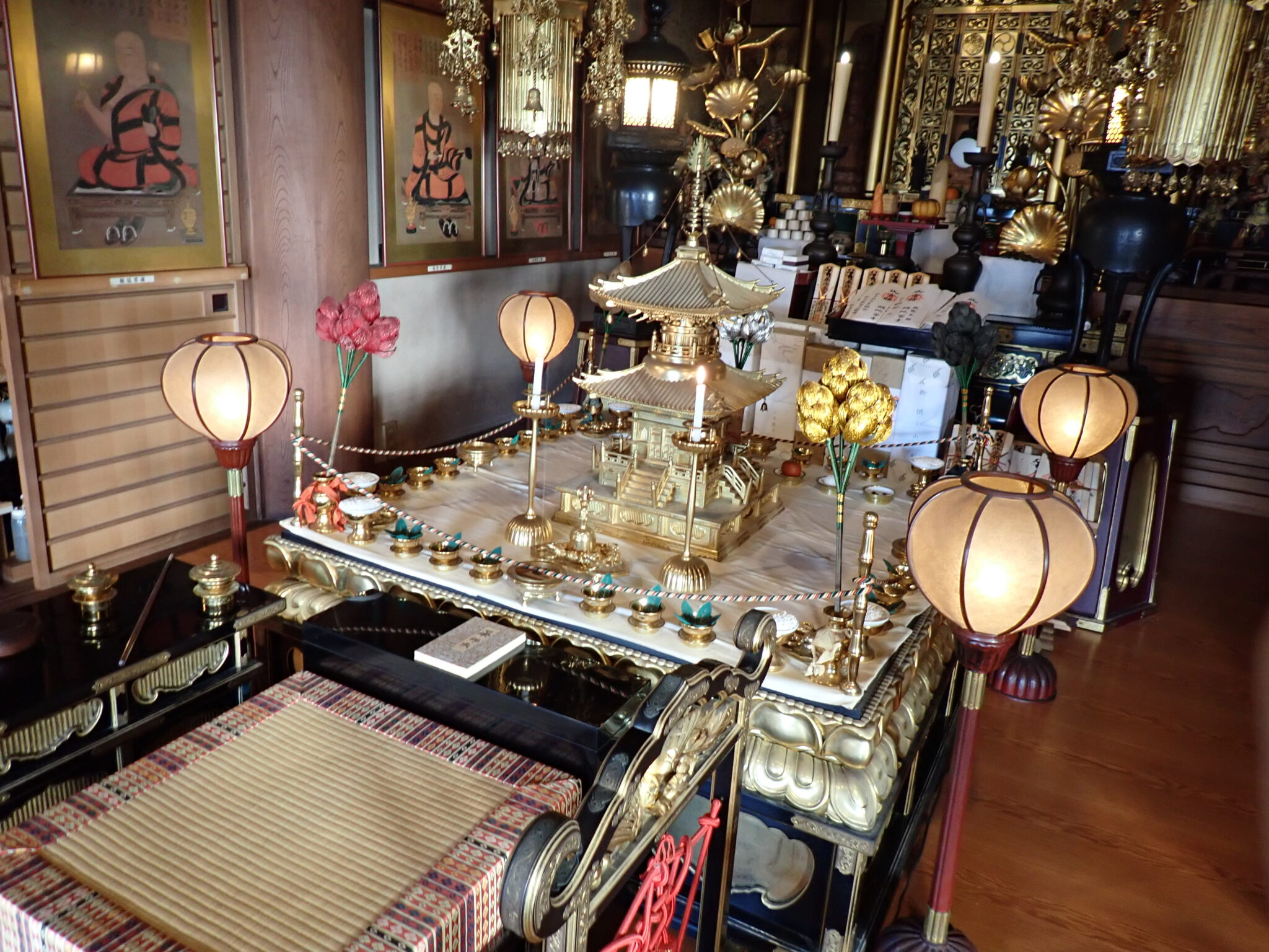 水(閼伽)、香、花、食物、燈明をお供えします。 -