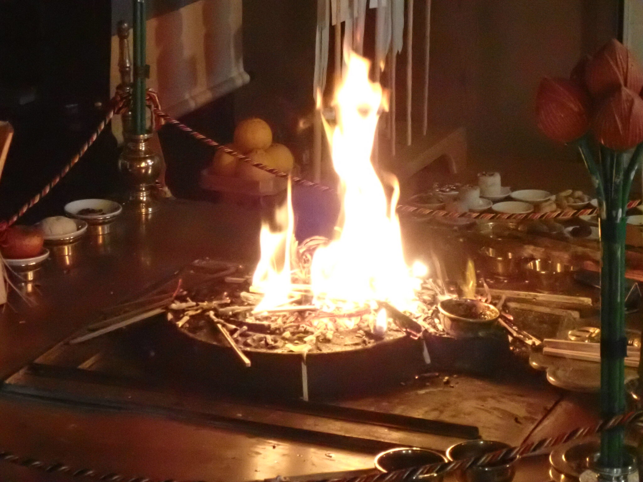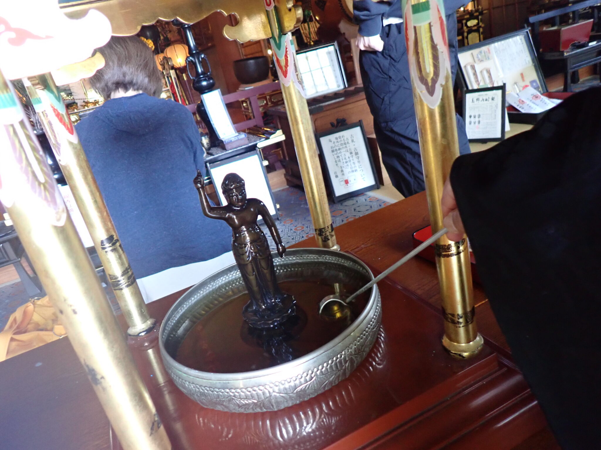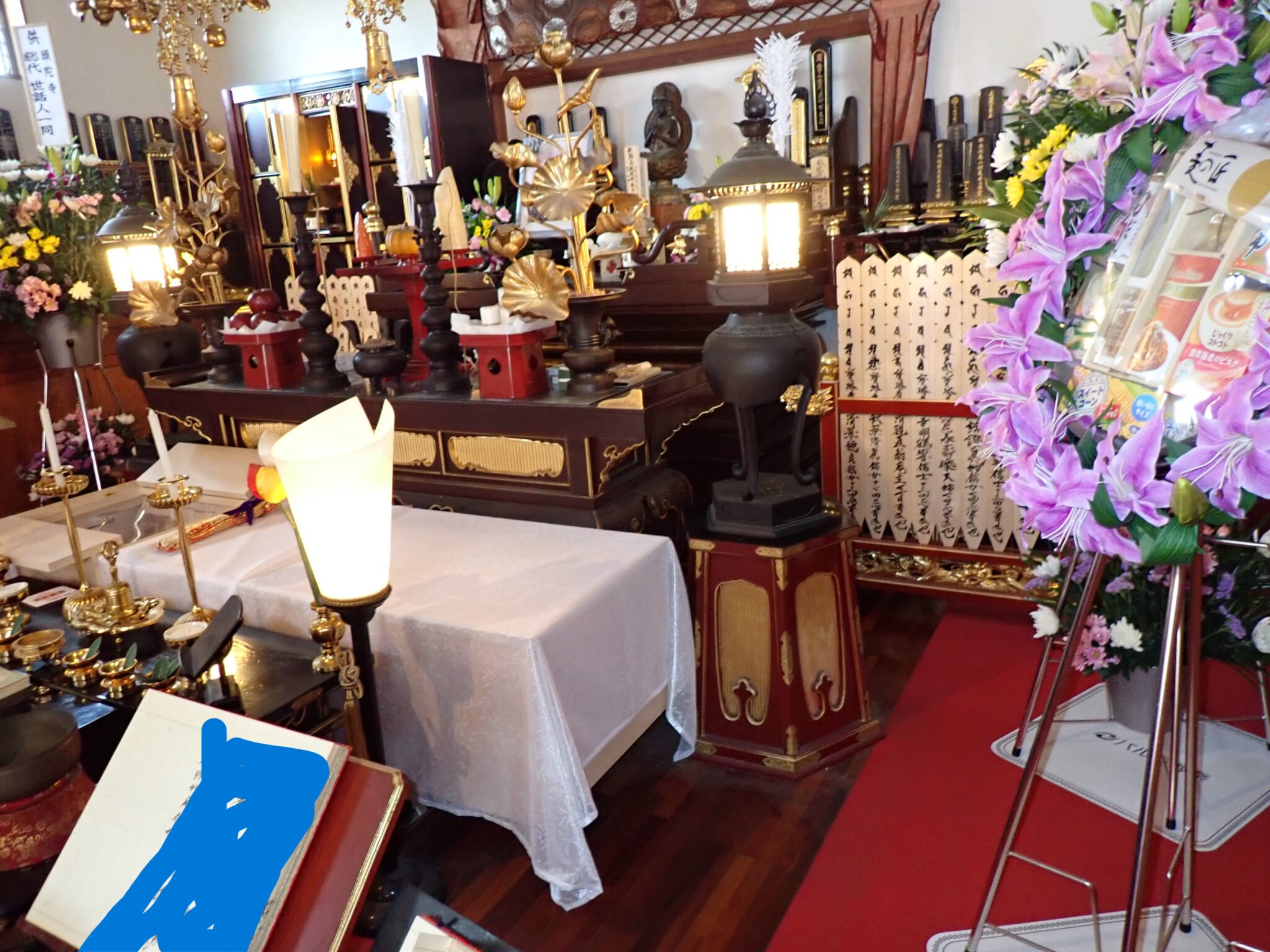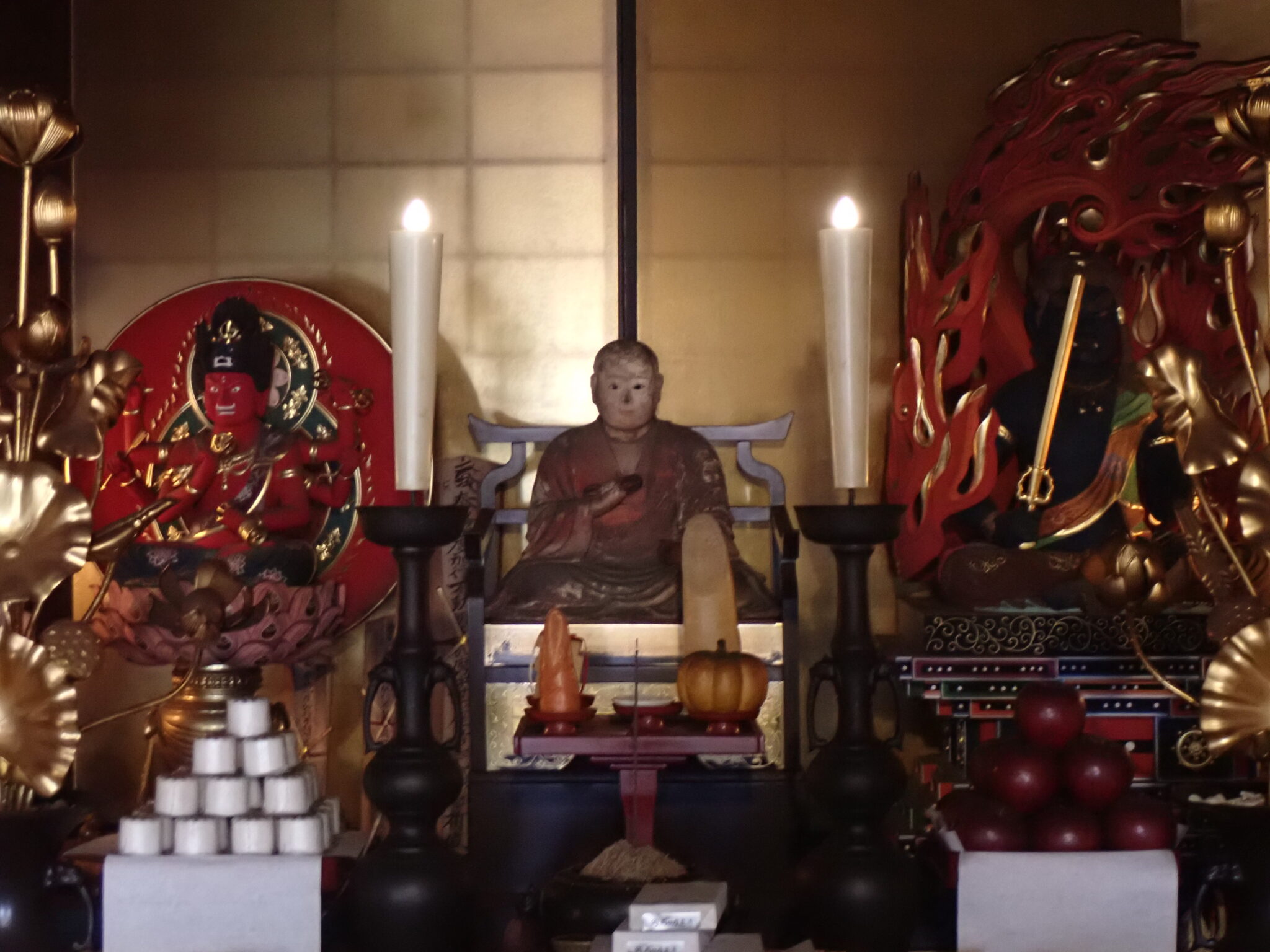 水(閼伽)、香、花、食物、燈明をお供えします。 -