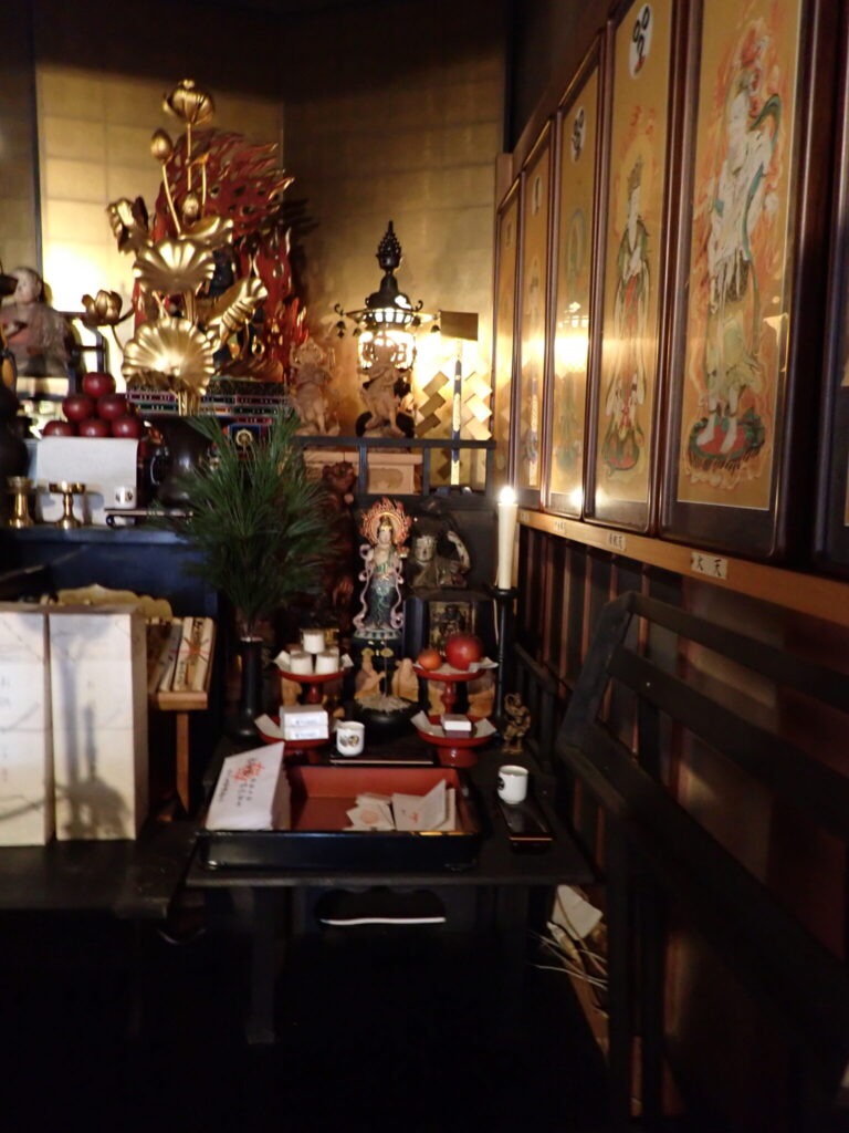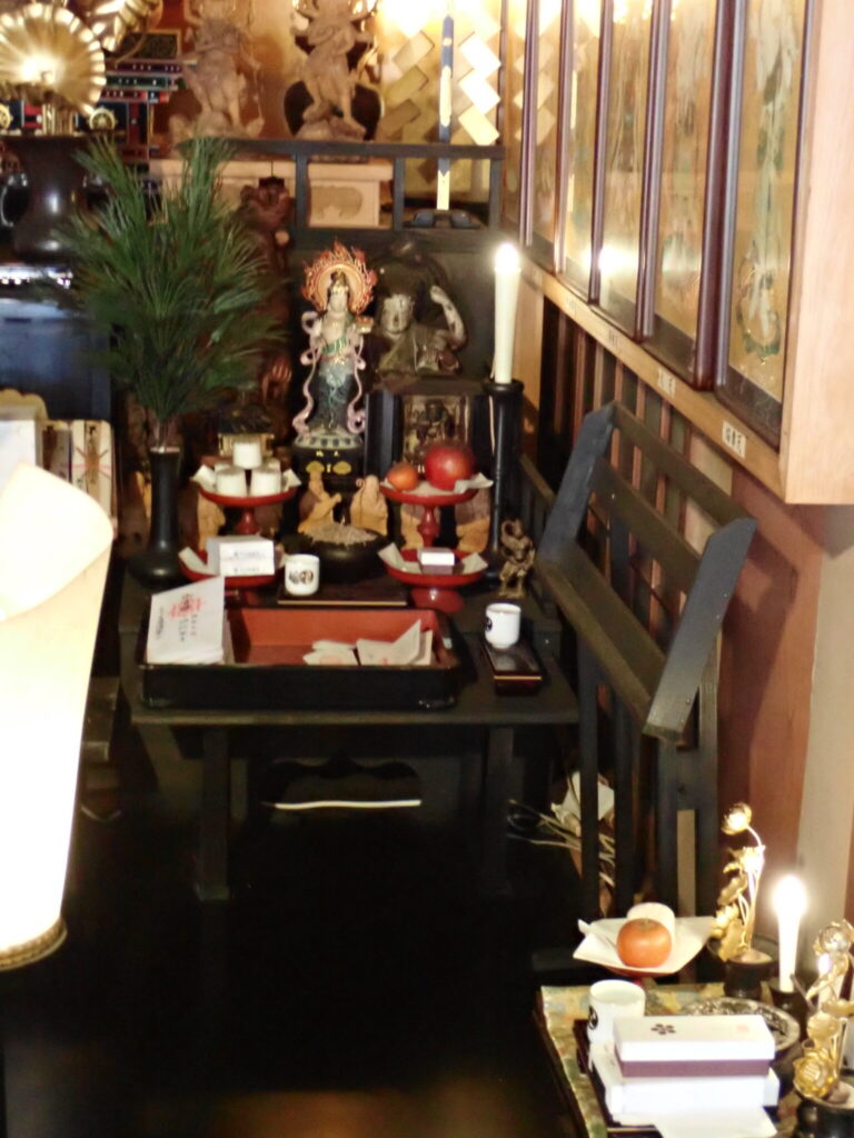 諸仏、諸菩薩を敬うため、亡き人を敬うために水(閼伽)、香、花、食物、燈明をお供えします。